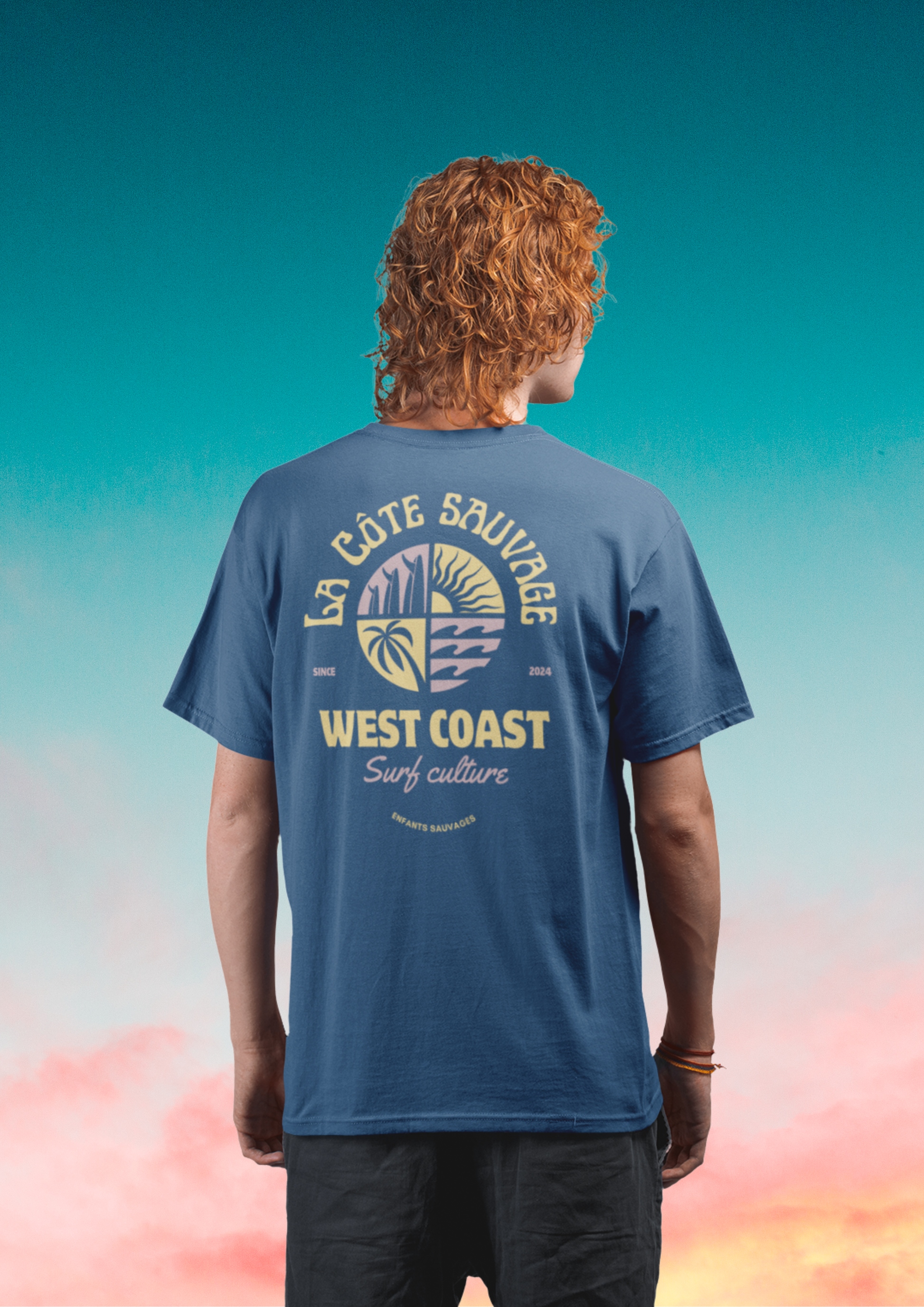 Ce t-shirt capture l’essence de la surf culture avec un design inspiré de la nature sauvage de la côte ouest. Au centre, une grande vague stylisée entourée du soleil évoque la liberté et la puissance de l’océan. L’inscription « LA CÔTE SAUVAGE – WEST COAST – Surf culture » renforce l’esprit rétro et authentique de ce modèle signé Les Enfants Sauvages.