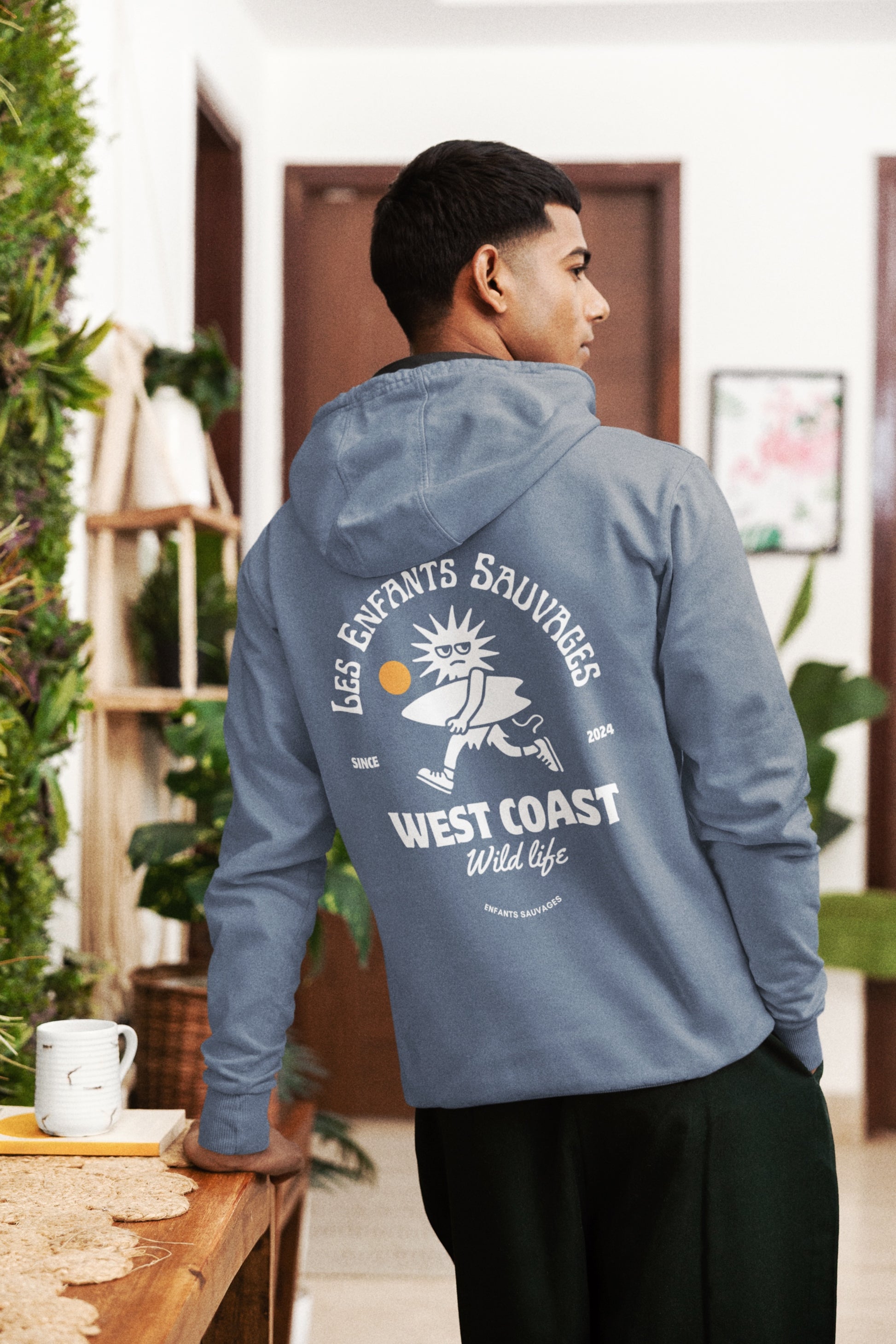 Confortable et plein de caractère, notre Sweat à capuche Enfants Sauvages incarne la vibe West Coast : un mélange d’énergie, de nature et de liberté sauvage.